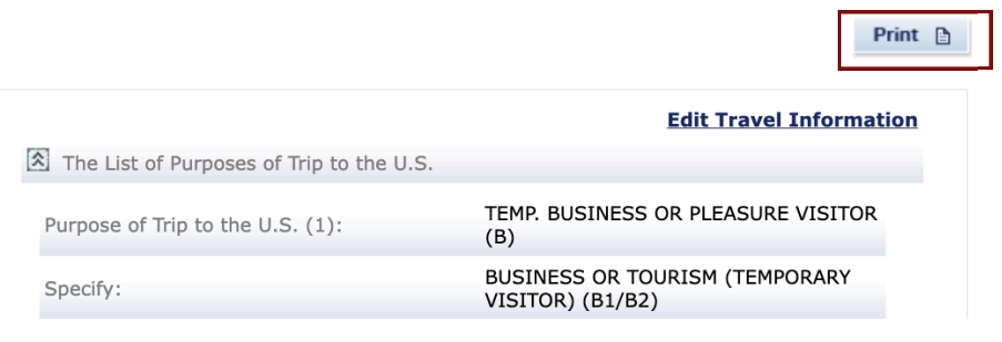 Сначала сохраните полную анкету через Print Application — она нужна для проверки ваших ответов, но не для собеседования.
