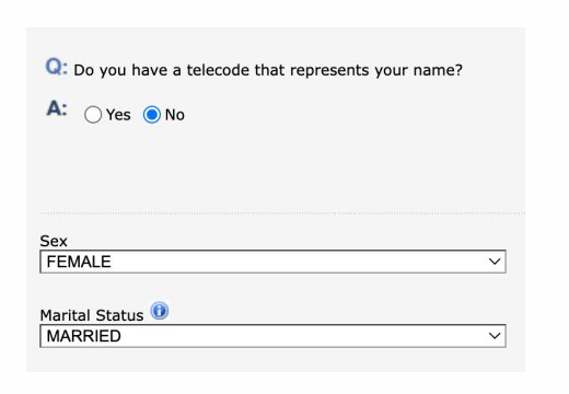- Если нужно указать данные супруги, которая взяла фамилию мужа, вписывайте и девичью фамилию тоже. Можно оформить через пробел после текущей, например: Ivanova Petrova.