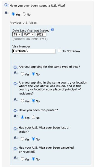 Если у вас были предыдущие анкеты DS160 или другие визовые анкеты США и таких стран как Канада, Великобритания, Австралия или Новая Зеландия, обязательно сверяйтесь с ними. Биография, места работы и учебы, названия компаний и другая важная информация должны совпадать. Расхождения в анкетах могут вызвать вопросы у консульства.