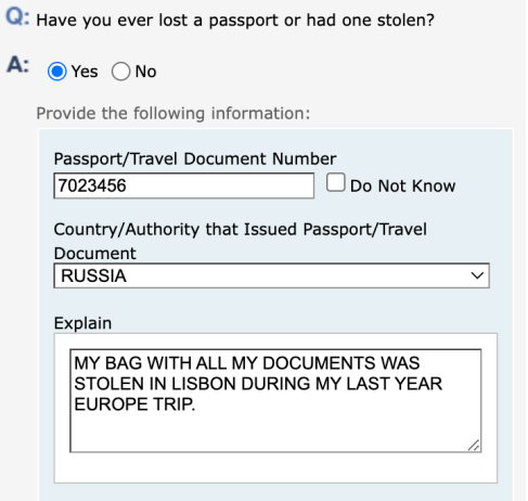Все данные нужно указывать честно и полно. Так как ответ затрагивает юридически чувствительные вопросы, формулировку лучше согласовать с иммиграционным адвокатом.